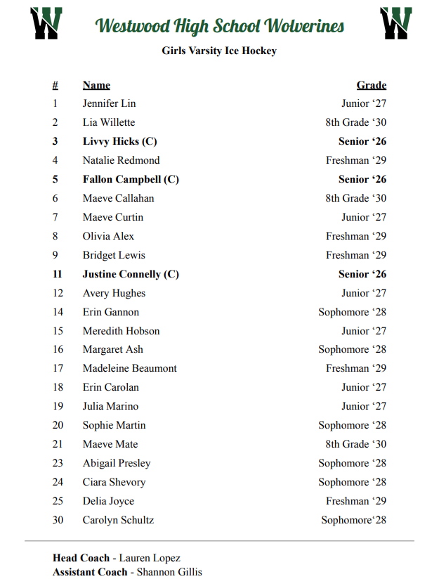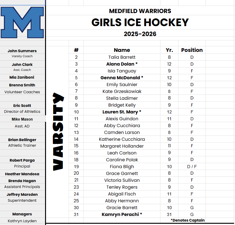 The game takes place at John A. Ryan Arena in Watertown, MA at 6pm! #9 ranked Medfield enters tonight’s game with a record of (W-L-T) (15-8-0), #1 seeded Westwood enters with a record of (21-1-0).