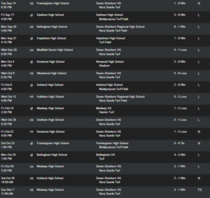 Dover-Sherborn tops Weston 20 to 13 -The Dover-Sherborn Blue Raiders improved to 2 and 0 on the season with a 20 to 13 win over Weston in a non-league matchup Friday Night. SR QB, Kirby Ryan and SR WR, Luke Fielding connected 3 times in the endzone. Ryan went 20 for 28, 271 yards passing […]