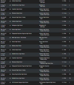 Westwood finished the season with 20 wins, 1 loss and 2 ties. The Wolverines claimed the Division 2 State Title and also the TVL Large Title. Playoff Schedule: #30 Burlington – 1 @ #3 Westwood – 7 11/4 5pm #14 Norwood – 0 @ #3 Westwood – 1 11/9 6:30pm #6 Danvers – 1 @ […]