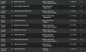 Medway Mustangs Previous Schedules & Results 2016 through 2022