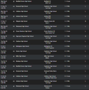 Softball South Division 1 #14 Dartmouth (14-7) – 1 @ #3 Hopkinton (18-2) – 2 6/3 3:30pm #11 Somerset-Berkley (16-6) – 0 @ #3 Hopkinton (19-2) – 1 6/7 3:30pm #3 Hopkinton (20-2) – 3 VS #2 Milford (21-1) – 6 6/8 5pm @ Taunton HS **Hopkinton Ends Season with 20 Wins and 3 Losses** South […]