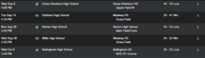 Sectional Championship Playoff Matchups (All games 7pm unless noted otherwise) South D3: Holliston – 7 @ Hanover – 40 South D4A: Pope John Paul II – 16 @ Millis – 28 South D2a: Westwood – 6 @ Falmouth – 28 Non-Playoff Matchups Hopkinton – 18 @ Sharon – 20 Medway – 28 @ Sandwich – […]
