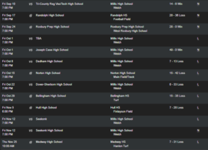Contributed by: HCAM (Hopkinton Local Access) Varsity Results Friday 10/12: -Hillers Field Hockey falls on the road to Dedham 1-0. Their record stands at 8 Wins, 5 Losses and 1 Tie. -Hillers Boys Soccer improves to 6-3-2 with 4-1 win over Dedham. -Hillers Girls Volleyball sweeps Dedham on the road 3-0. -Hillers Football improves to […]