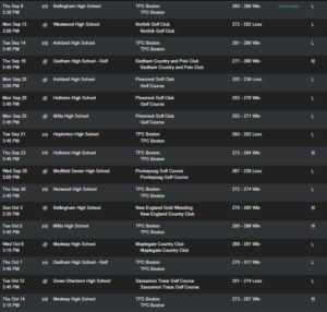 Boys Cross Country (1-5) Wed 9/7/16 3:30 PM VS Dover-Sherborn (L 45-18) Wed 9/14/16 3:30 PM @ Ashland (L 32-25) Wed 9/21/16 3:30 PM VS Millis (W) Wed 9/28/16 3:30 PM VS Bellingham (L 43-18) Wed 10/5/16 3:30 PM @ Holliston (L 39-21) Thu 10/13/16 3:30 PM @ Westwood (L 42-19) Wed 10/26/16 3:00 PM TVL Championship Meet – McCarthy […]