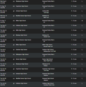 Thursday April 21st Baseball: 2- Boston Latin @ Westwood – 9 1 – Bellingham @ Medway – 4 9 – Wellesley @ Medfield – 2 8 – Norton @ Seekonk – 2